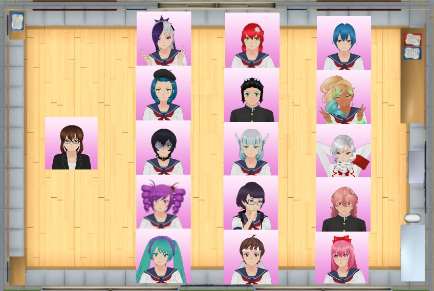 La classe possède la même apparence que toutes les autres. Le sol est fait en parquet clair, les murs et le plafond sont de couleur grise. Au devant de la classe se trouvent un grand tableau, un bureau ainsi qu'une estrade, sur laquelle le professeur se tient. Il y a quinze bureaux et quelques compartiments dans le fond de la classe.