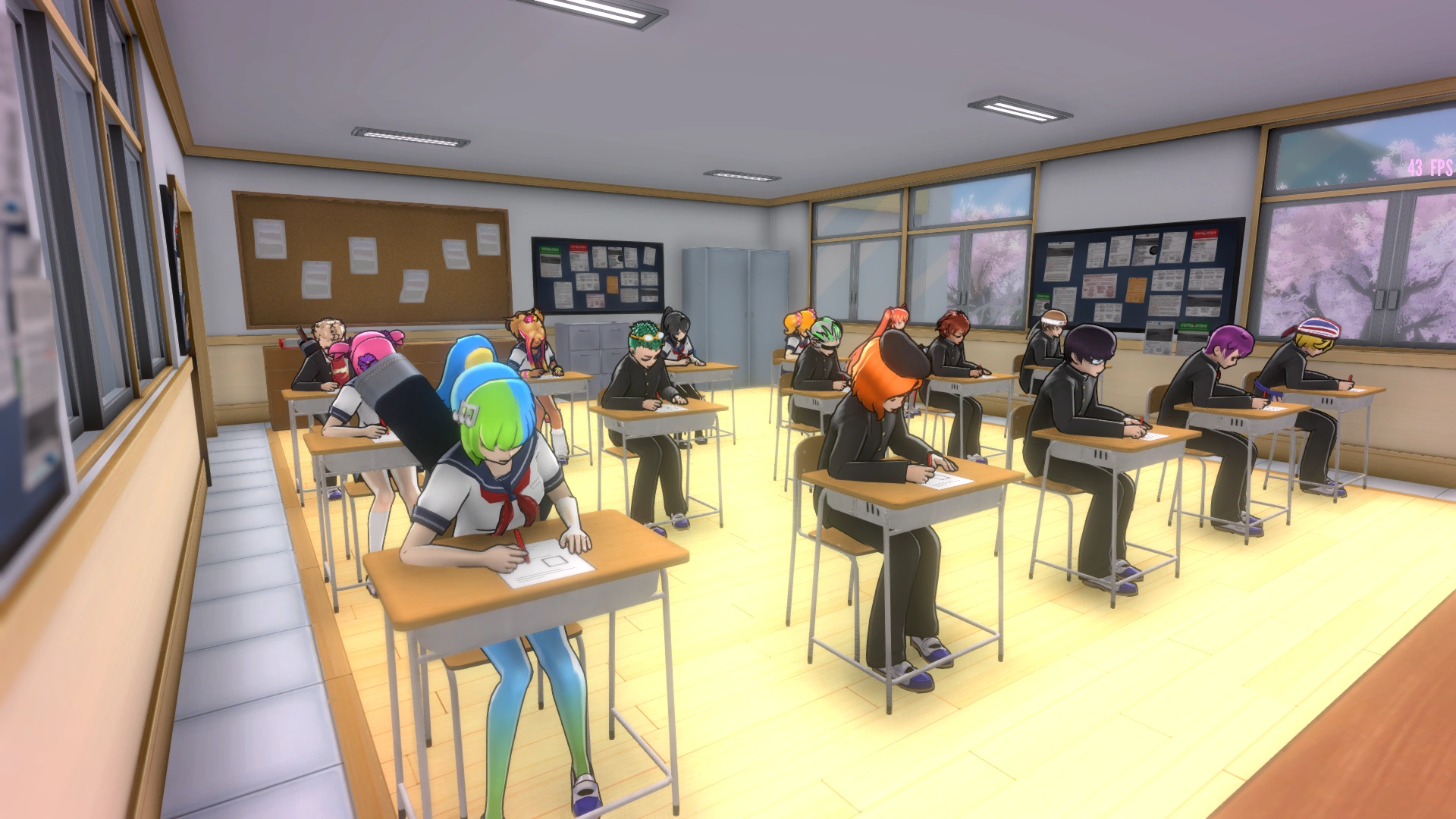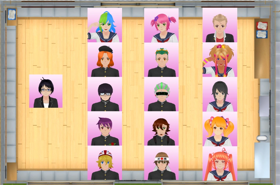 La classe possède la même apparence que toutes les autres. Le sol est fait en parquet clair, les murs et le plafond sont de couleur grise. Au devant de la classe se trouvent un grand tableau, un bureau ainsi qu'une estrade, sur laquelle le professeur se tient. Il y a quinze bureaux et quelques compartiments dans le fond de la classe.