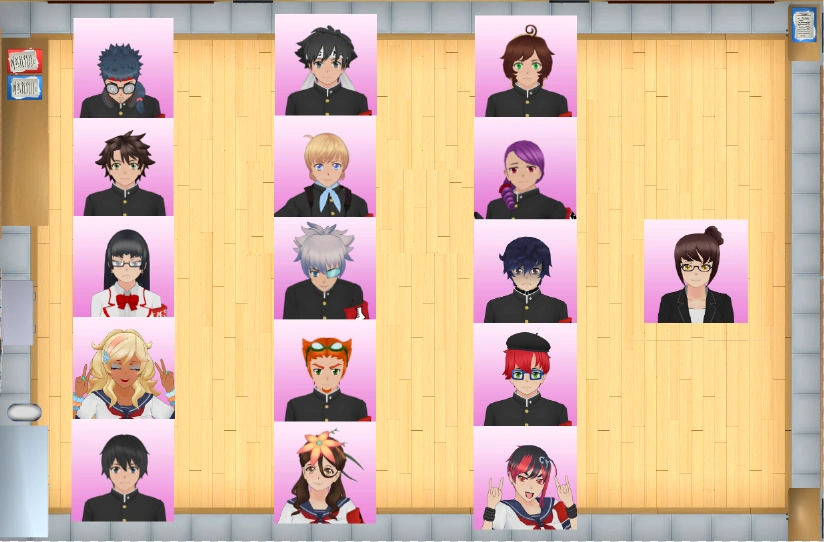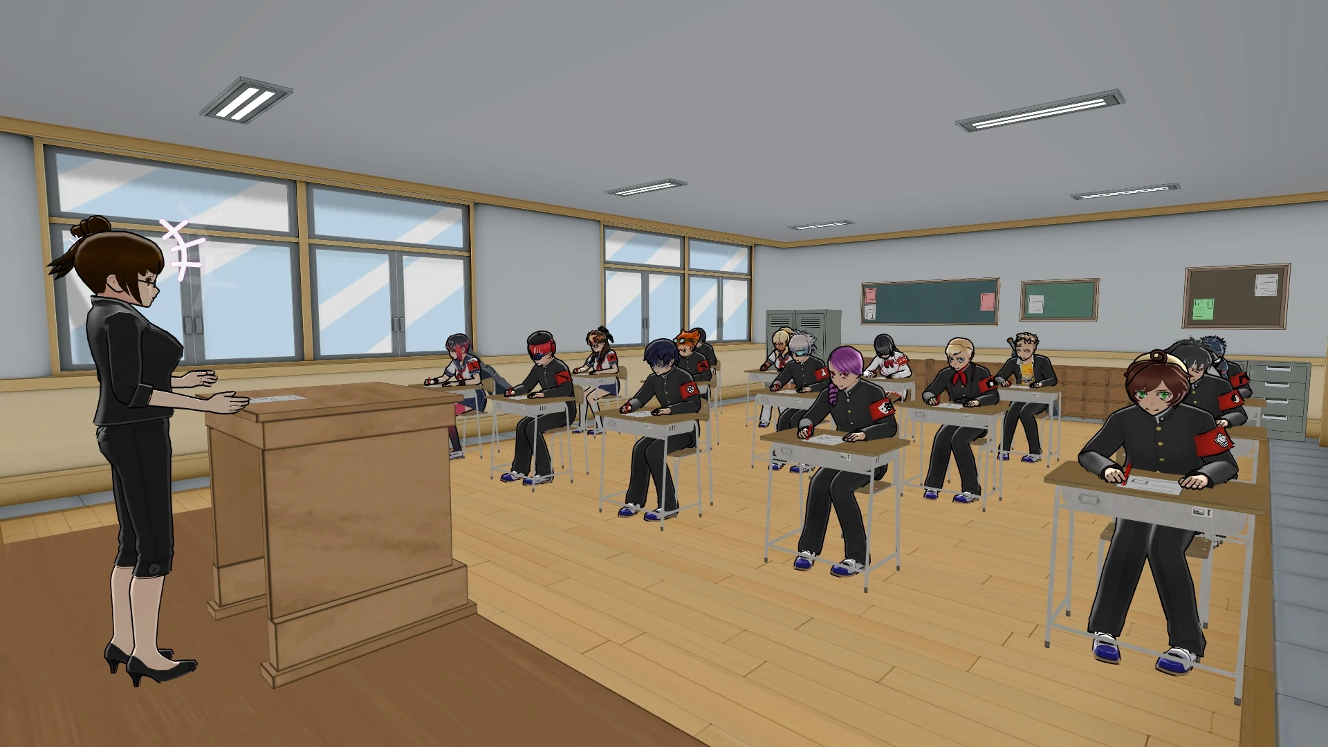 La classe possède la même apparence que toutes les autres. Le sol est fait en parquet clair, les murs et le plafond sont de couleur grise. Au devant de la classe se trouvent un grand tableau, un bureau ainsi qu'une estrade, sur laquelle le professeur se tient. Il y a quinze bureaux et quelques compartiments dans le fond de la classe.