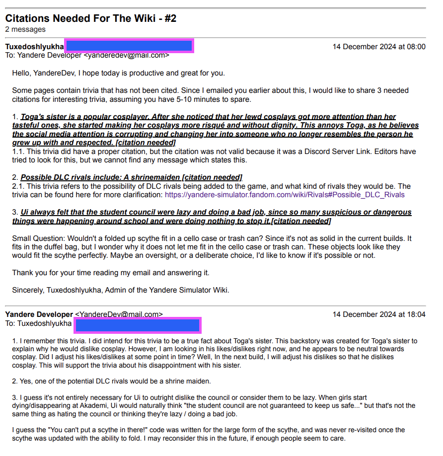 - ↑ https://yanderedev.wordpress.com/2016/05/15/may-preview-1/