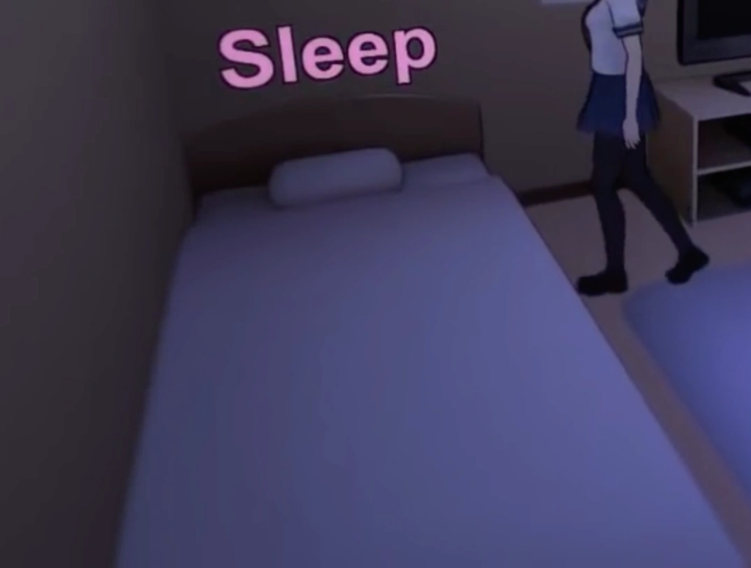 Há uma cama no quarto de Yandere-chan, com a qual você é capaz de dormir à noite. Levará para o dia seguinte.