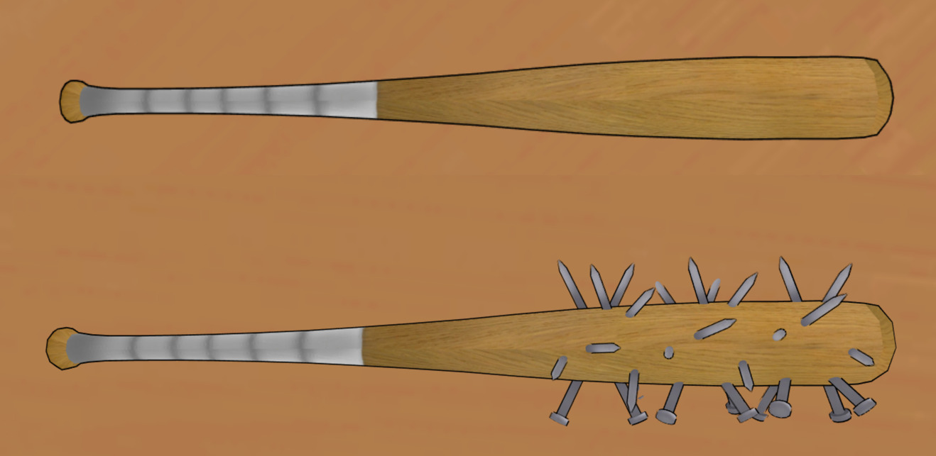 ...why are you carrying around a bat with a bunch of nails hammered into it...?!...