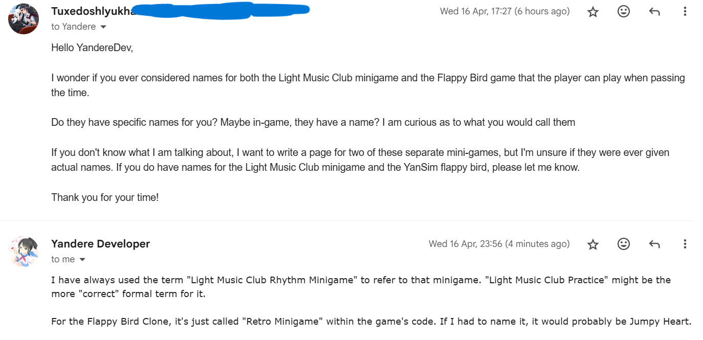 - ↑ The 11th Anniversary of Yandere Simulator's Development — YandereDev on WordPress