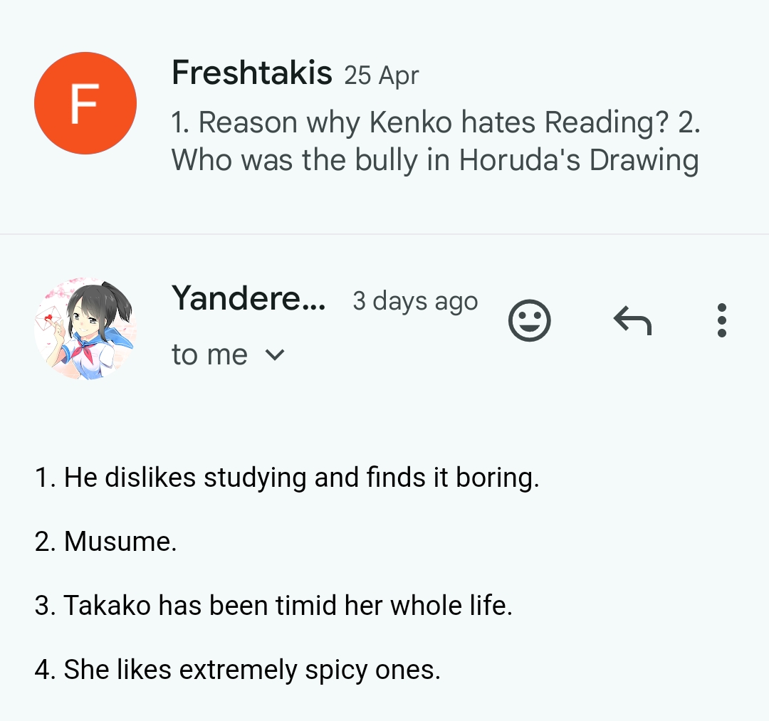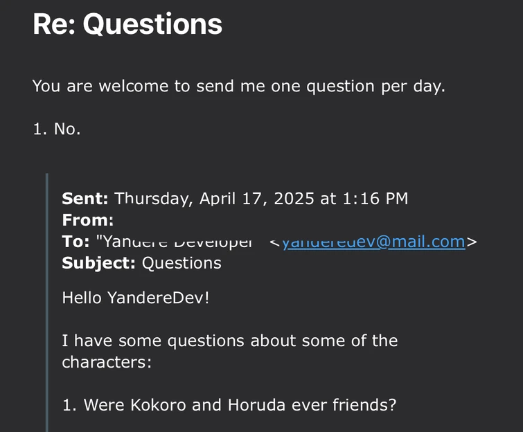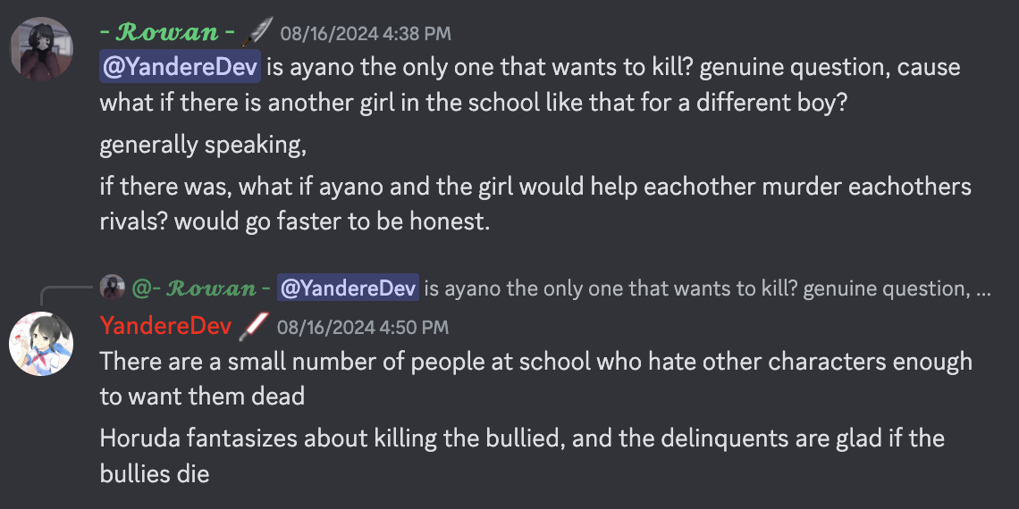 - ↑ https://reddit.com/r/yandere_simulator/comments/8m3zh9/questions_for_yanderedev/