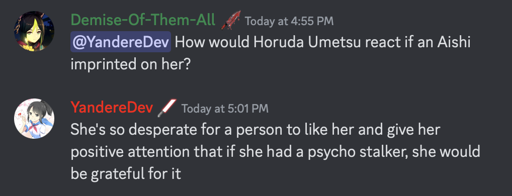 - ↑ https://www.reddit.com/r/yandere_simulator/s/AHOMnkJoSi
