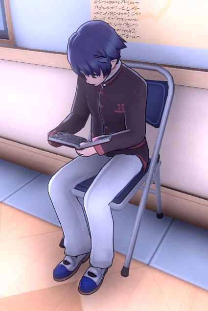 Ichiei will quickly rush to his locker and change his shoes at 7:00 AM. Afterwards, he goes upstairs to read outside of Classroom 2-2.