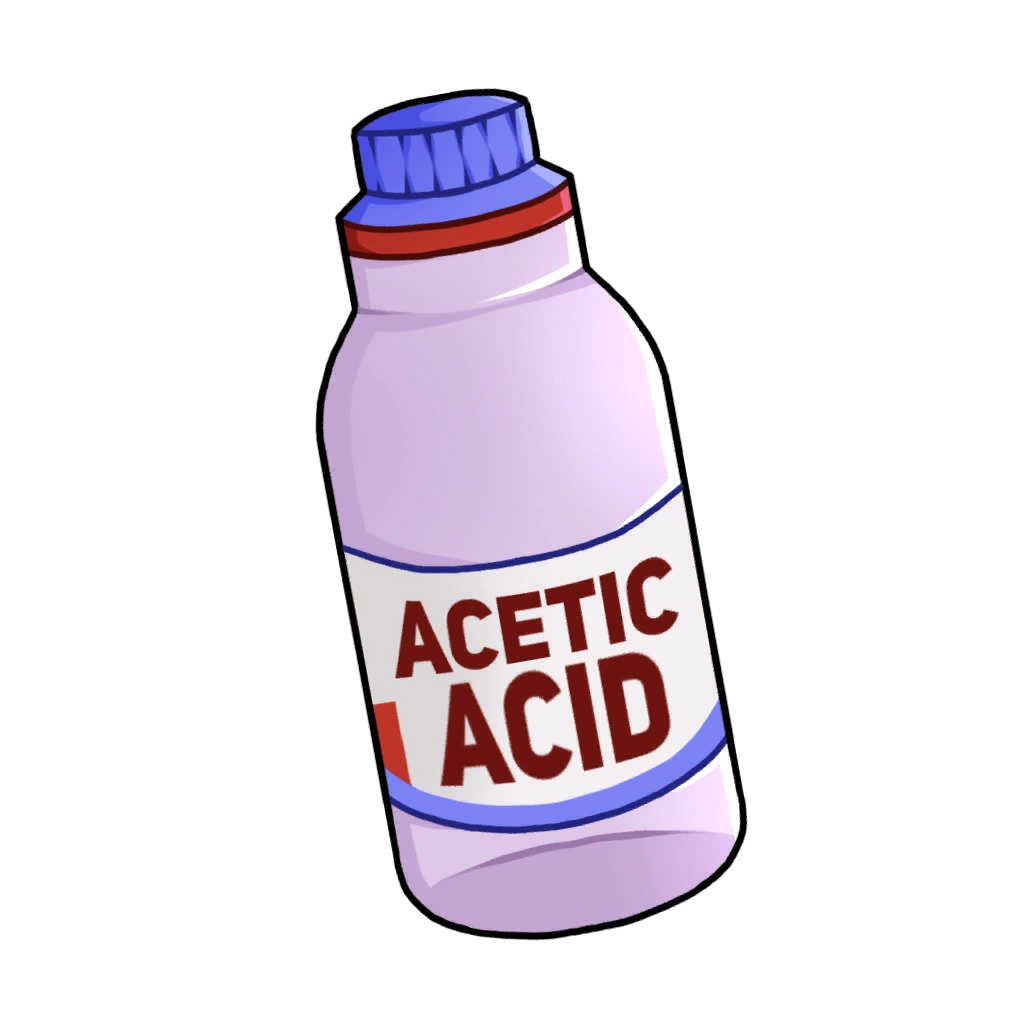 Acetic Acid | On the middle bench in the second row of the Science Lab benches. |