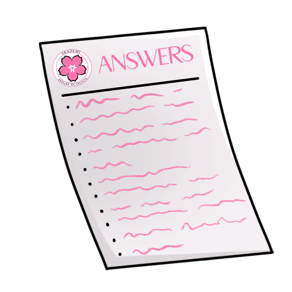 Duplicated Answer Sheet | It is duplicated through the Info Club doors. It is slid under the door, allowing Info-chan to copy the sheet and return it back. Exclusive to 202X Mode. |