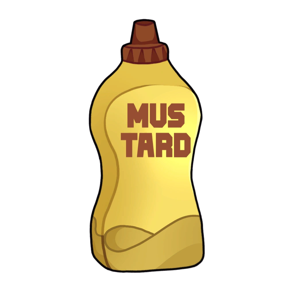 Mustard | On a small pink island with oven mitts in the Cooking Club kitchen area. |