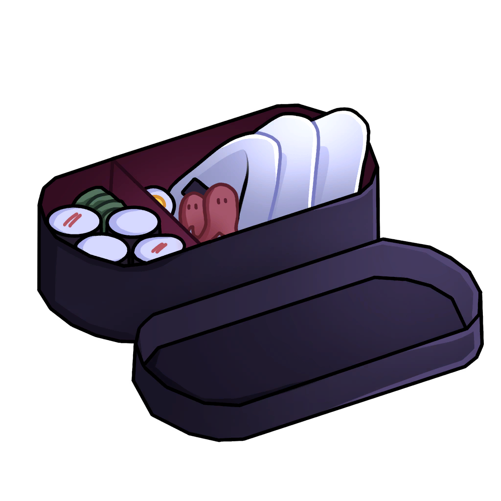 | The player can visit the kitchen island on the right of the Home Ec Room (closest to where the right sliding door is), and prepare a meal. As this object does not take up space in the player's inventory, it can be checked by opening the phone menu and checking through the inventory app to see the item "Bento". | |