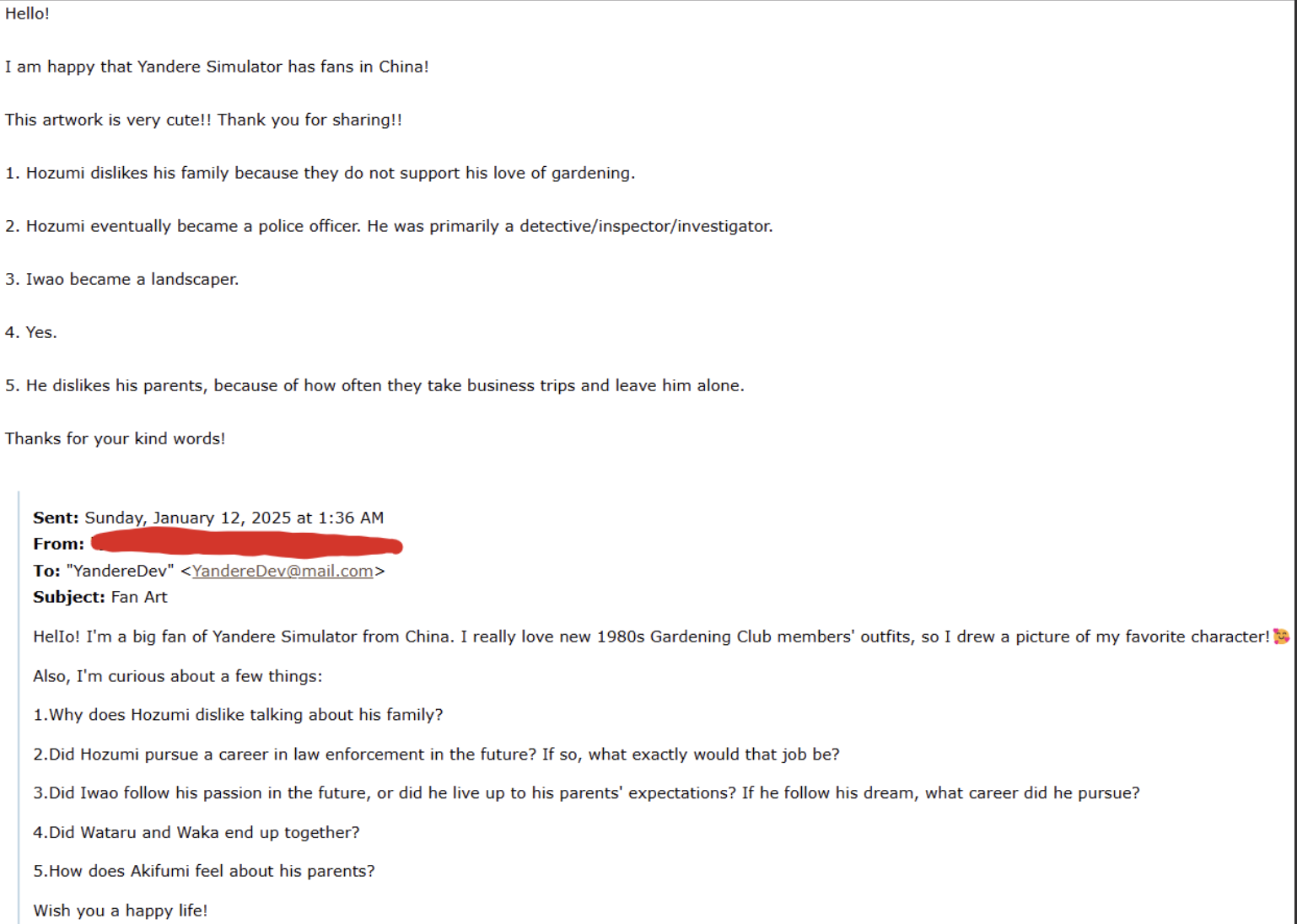 At 8:15 AM, Iwao will run to Classroom 2-1 and sit at his desk. He starts his morning classes at 8:30 AM. Then, he leaves to eat his lunch at the Gardening Club at 1:00 PM.