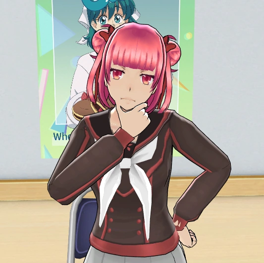 If the Pool Sign is placed, she will instead head to Classroom 1-1 and wait for classes to start.