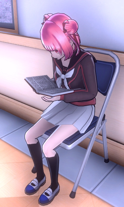 Kaho will quickly rush to her locker and change her shoes at 7:00 AM. Afterwards, she then goes to sit and read outside the Sewing Room.