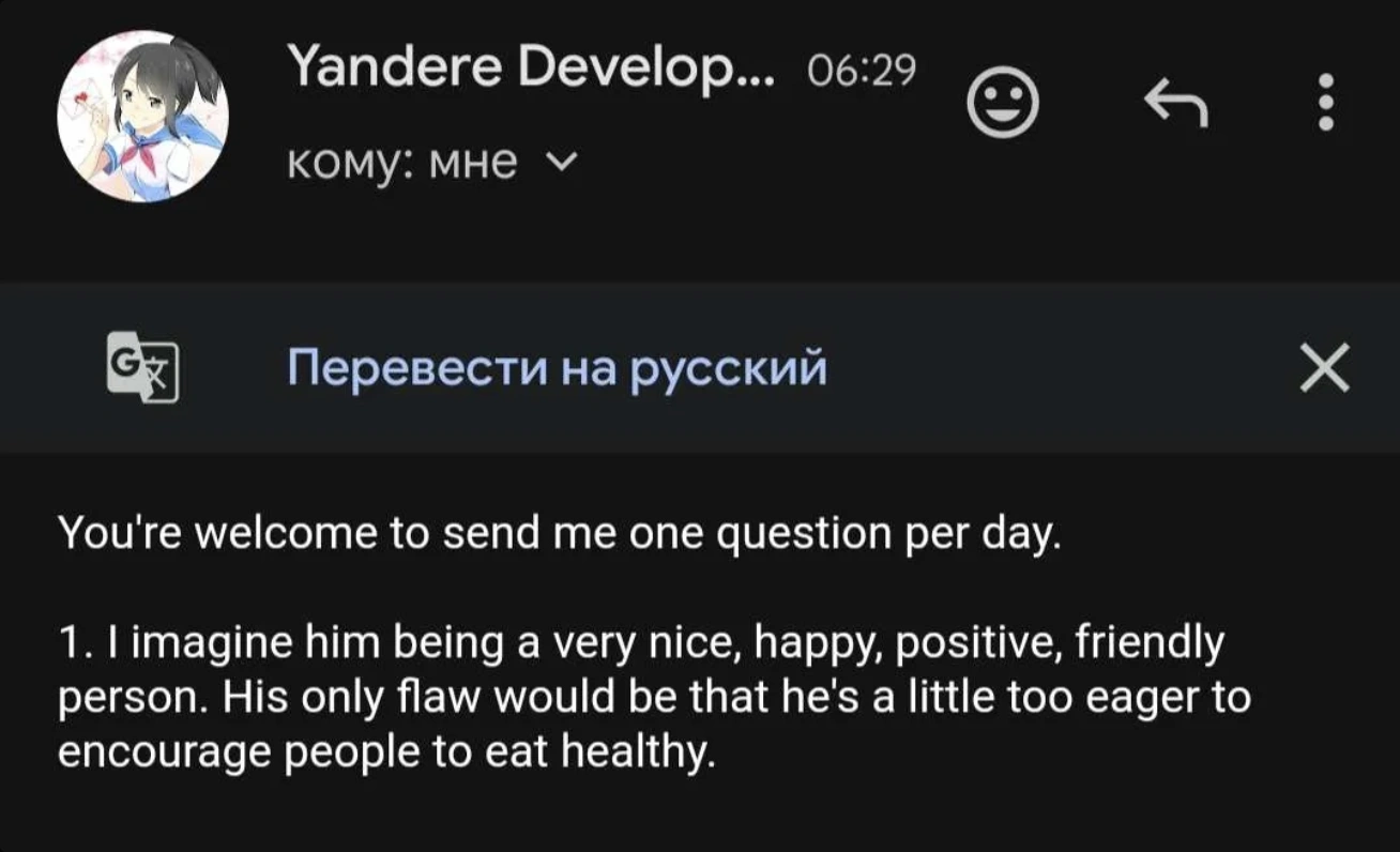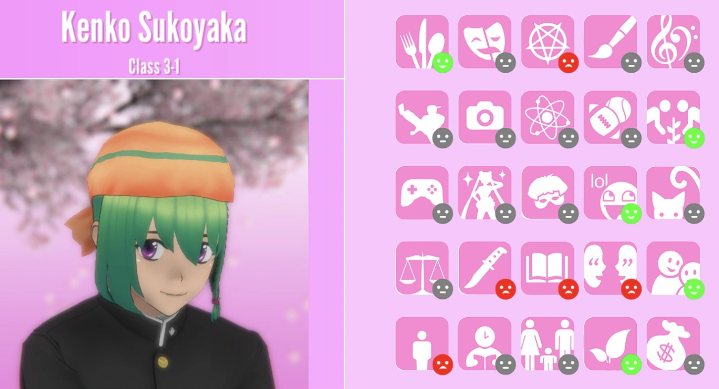 YandereDev imagines Kenko as a nice, friendly, positive, and happy person.[2]