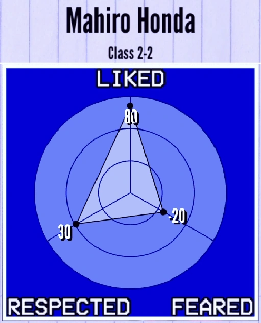 During Week 10, Mahiro helps with Sonoko Sakanoue's investigation. During his free periods, he will investigate several students, including Ryoba.