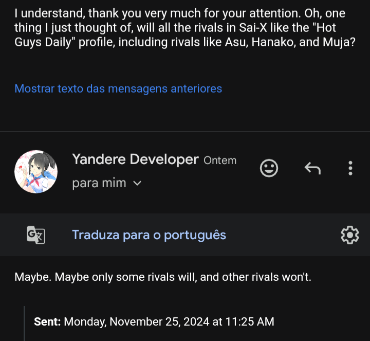- According to YandereDev, Seiyo is not embarrassed of Amai's taste in guys, rather, he feels bad for her.[2]