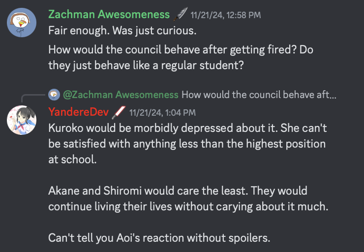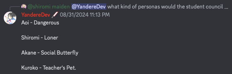 - ↑ https://www.reddit.com/r/yandere_simulator/comments/fdncn7/questions_about_the_student_council/