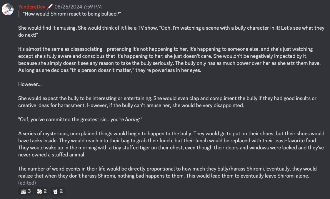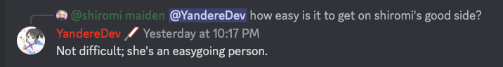 - ↑ Skill issues for Shiromi lol - Skibidisimon on the Yandere Simulator Wiki