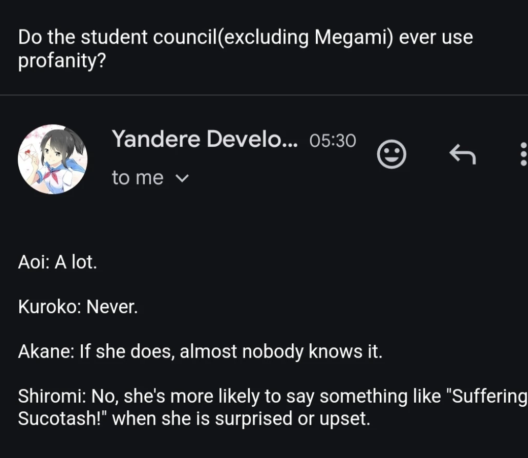 - ↑ https://www.reddit.com/r/yandere_simulator/comments/7s92g7/question_about_infochan_and_student_council/