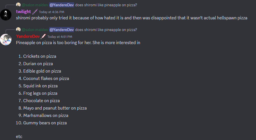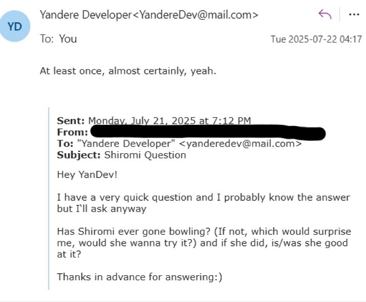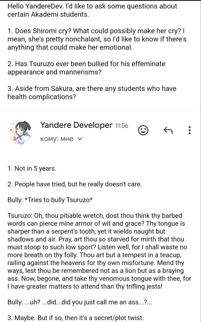 - ↑ https://www.reddit.com/r/yandere_simulator/comments/7ue43y/pointless_questions/