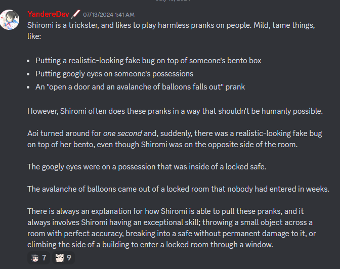 - ↑ 18.0 18.1 https://www.reddit.com/r/yandere_simulator/comments/7ruxfq/what_would_shiromi_dopart_1/