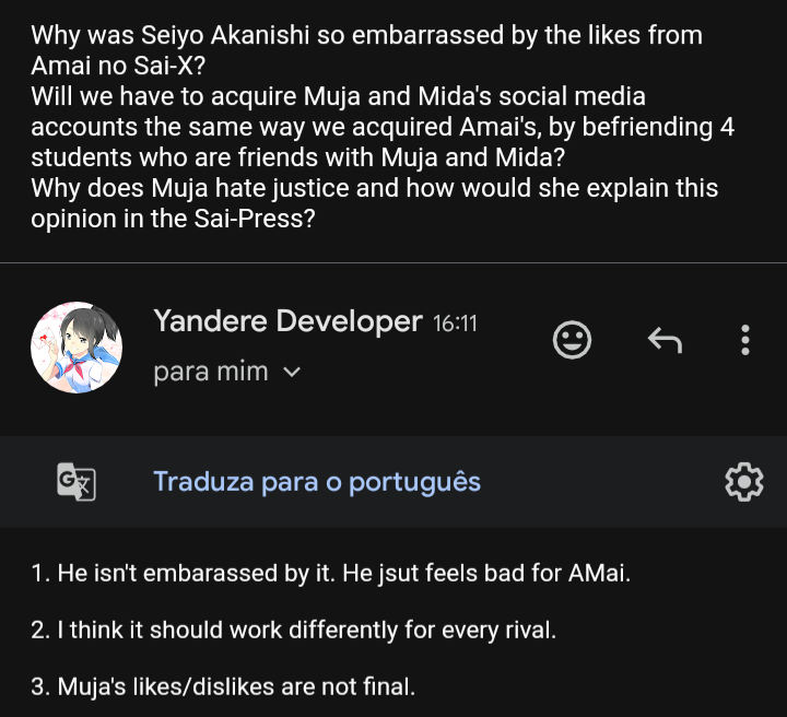 - YandereDev plans to rewrite most of the dialogues on Yancord.[1]