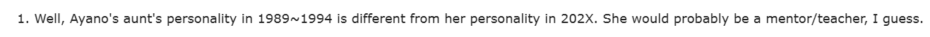 - Ryoba's Sister would have this personality as she became a mentor or a teacher in 202X.[1]
