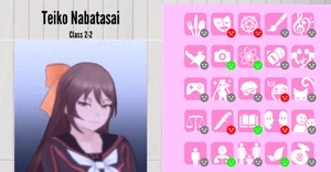 - Ryoba Aishi: According to YandereDev, Teiko suspected it was Ryoba who got her expelled after observing the latter frequently going in and out of the Counselor's Office. She didn't gather any evidence for this, however.[7] If Teiko met Ryoba, she would treat the latter like she was an old friend, as she doesn't want to be impolite over a theory that she could be wrong about.[3]