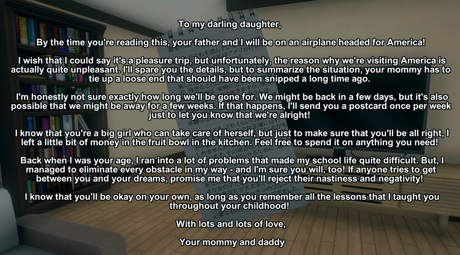 When my mom died last year, my family lost a lot of money...my dad took out a loan so that he could continue to pay for my tuition fees...but...It turns out that he borrowed money from some really shady people...
