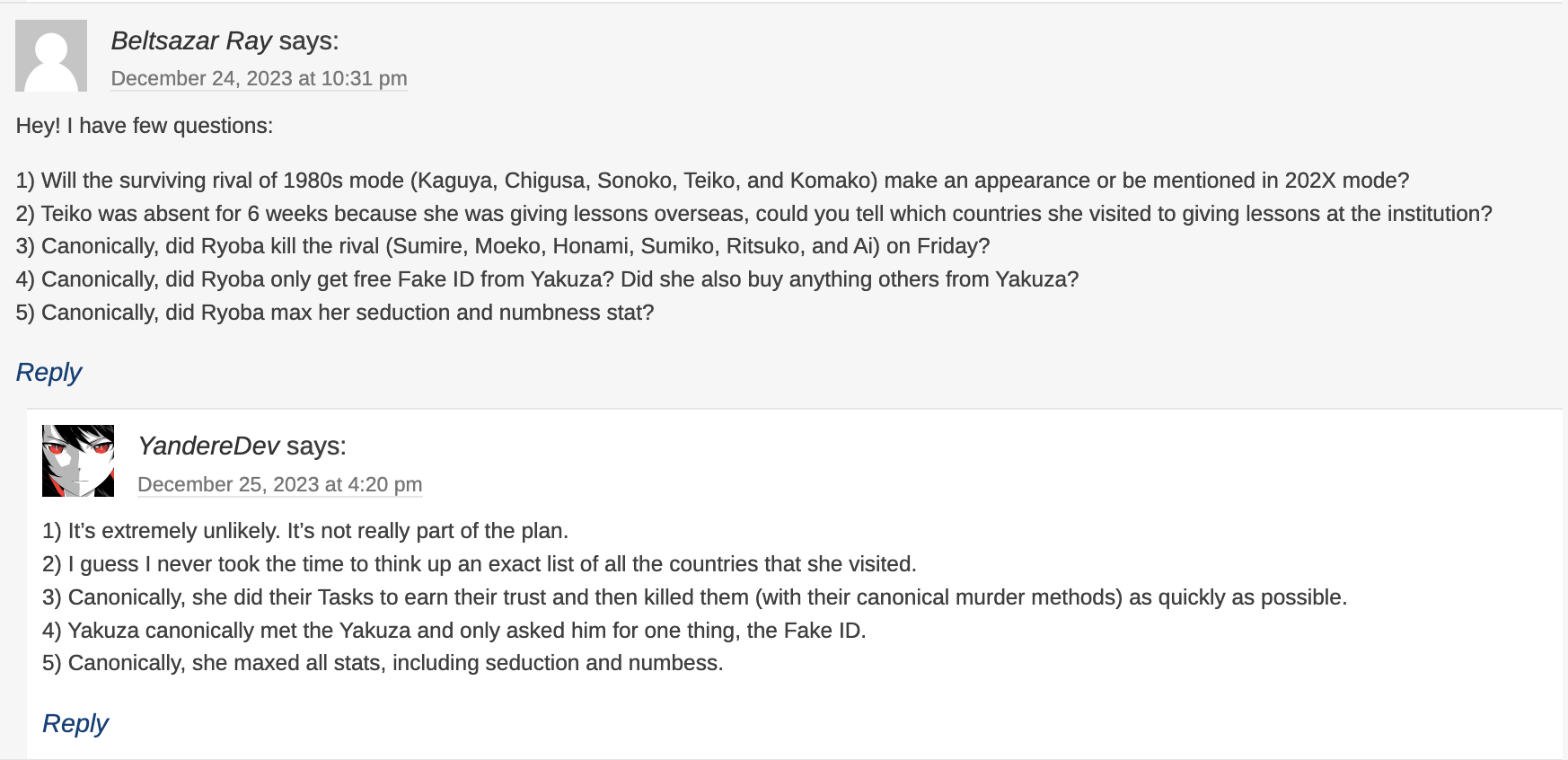 - ↑ Raveneuphoric on Yandere Simulator Wiki