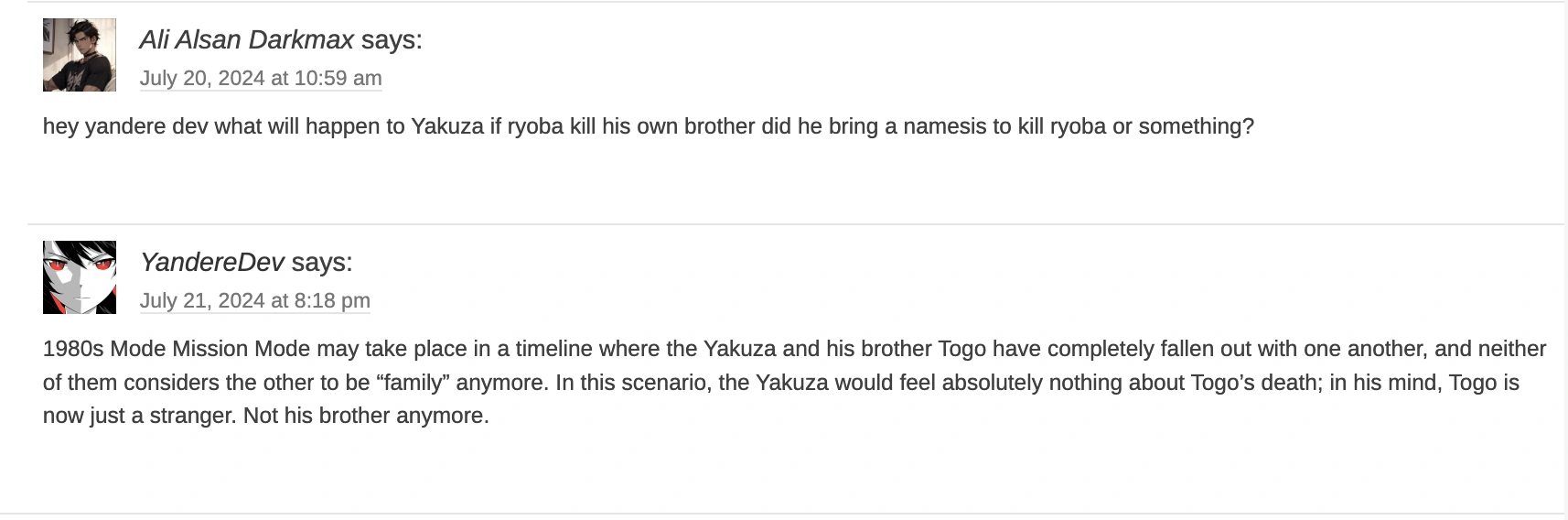 - ↑ https://yanderedev.wordpress.com/2022/05/18/may-18th-bug-fixing-build-3/#comment-128491