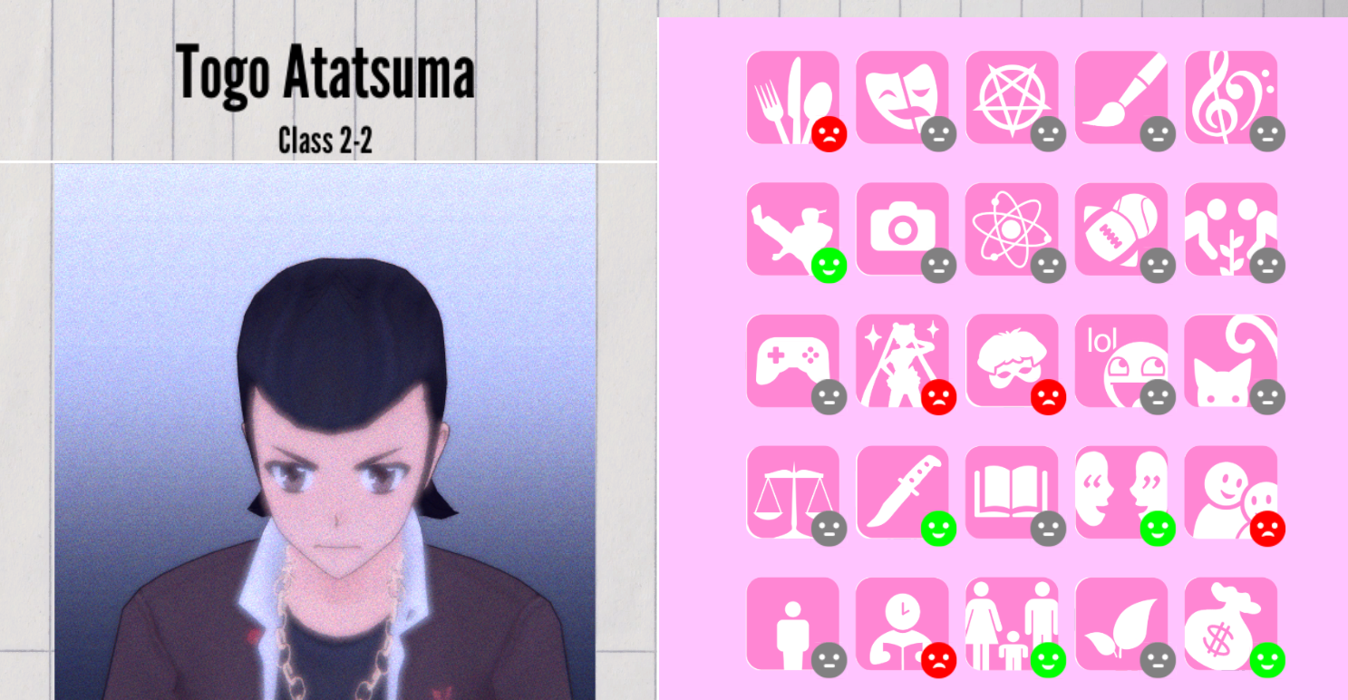 Togo's brother is involved in the Yakuza, as hinted at in his Student Profile. He idolizes him and wants to be like him; however, the Yakuza strongly discourages him from also being involved.