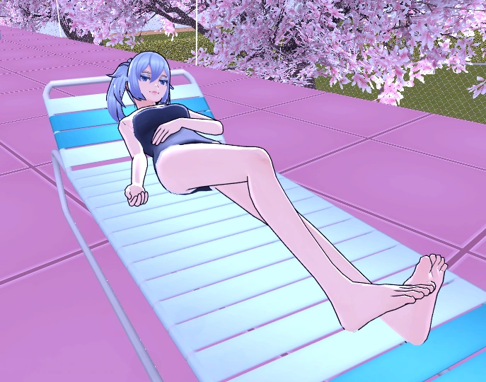 Umeko will quickly rush to her locker and change her shoes at 7:00 AM. She then goes outside to sit and read by the Swimming Pool.