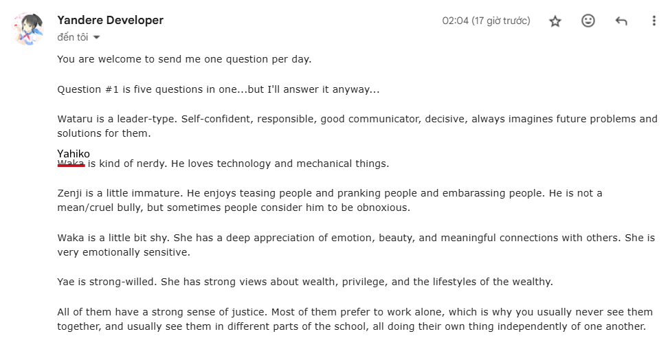According to YandereDev, Yahiko is kind of nerdy, as he loves technology and mechanical things.[2]